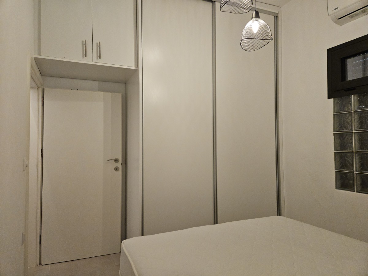 De tweepersoonsslaapkamer heeft inbouwkasten en airconditioning.