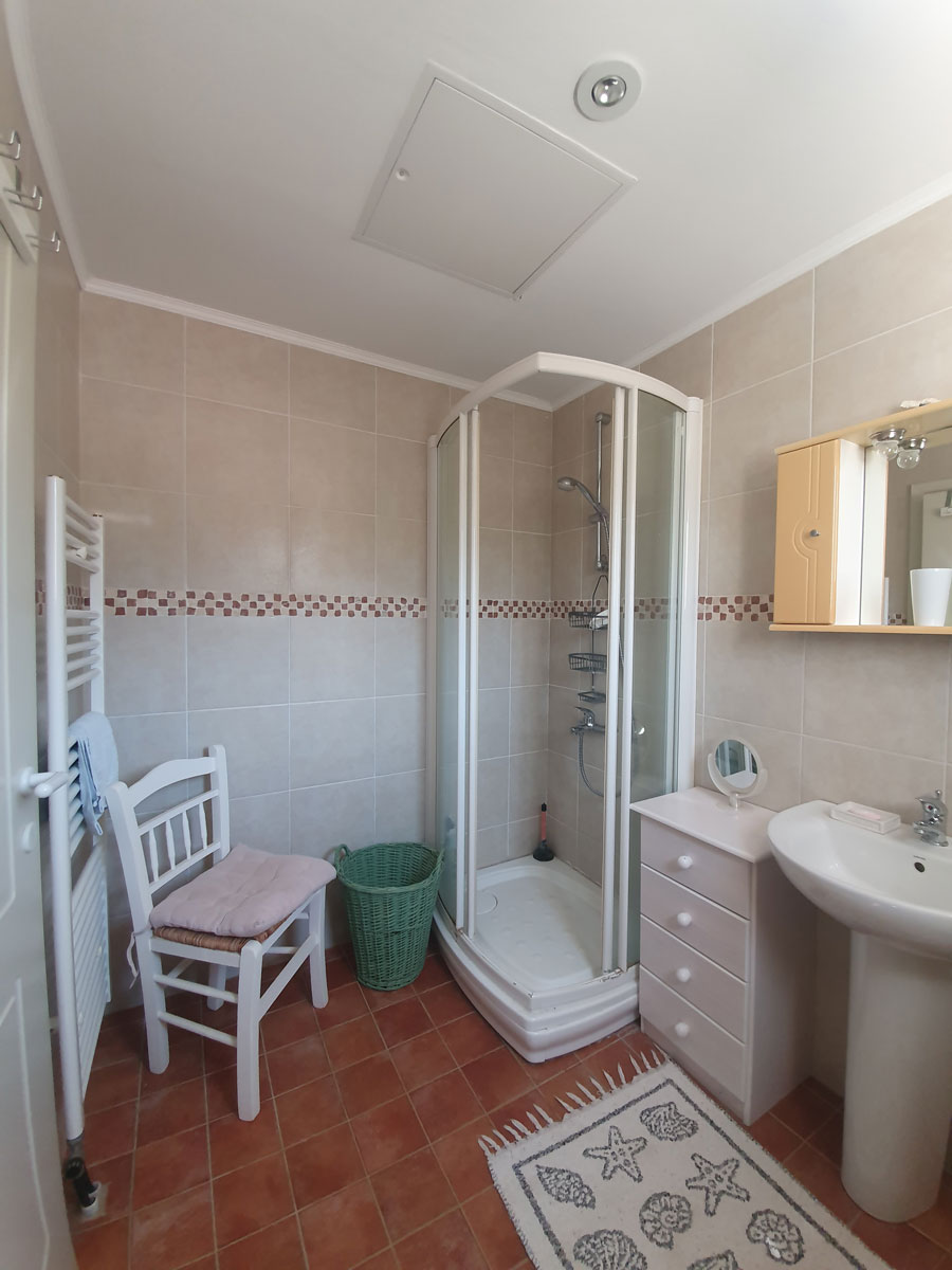 Downstairs is a large storage room and there are two independent apartments. Both apartments have a living room with open plan kitchen, large double bedroom with fitted wardrobes and a shower room.